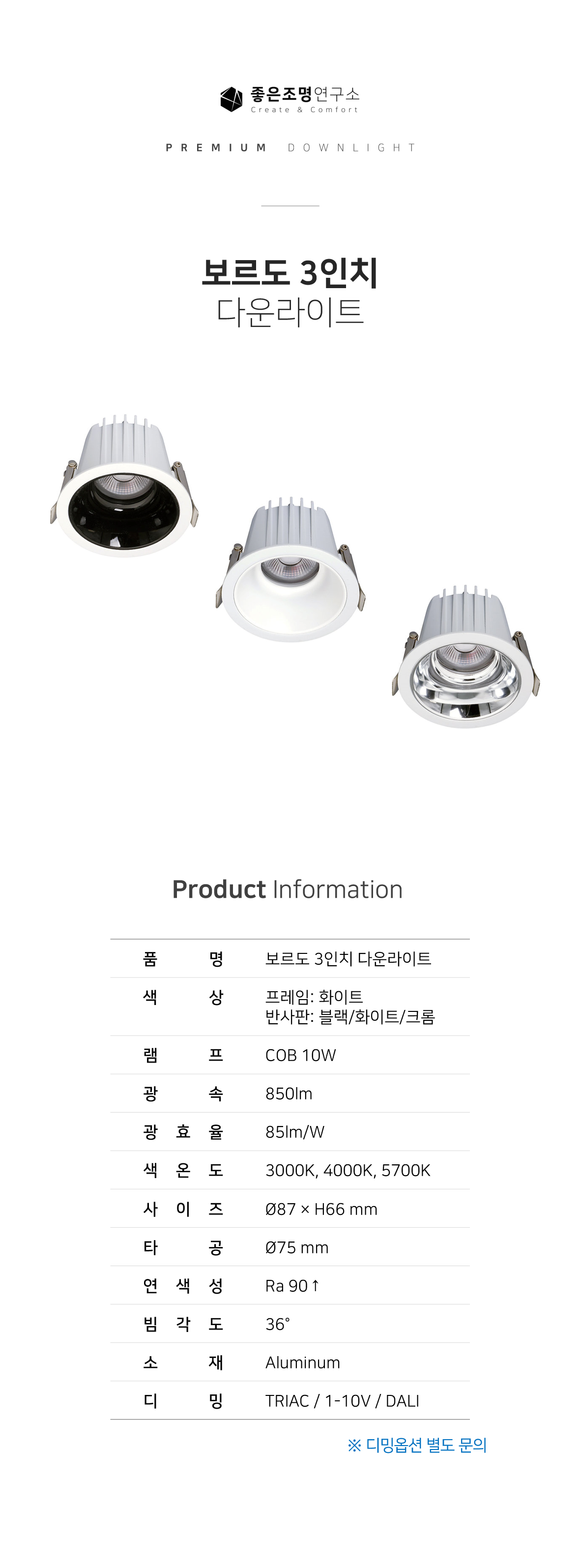 [블랙/화이트/크롬가능] 보르도 3인치 10W 다운라이트