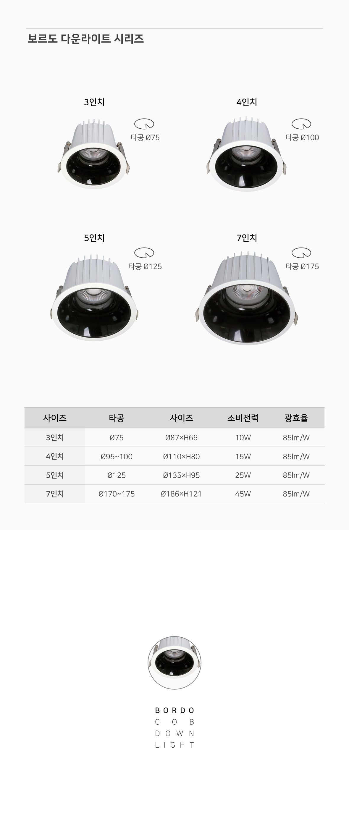 [블랙/화이트/크롬가능] 보르도 7인치 45W 다운라이트