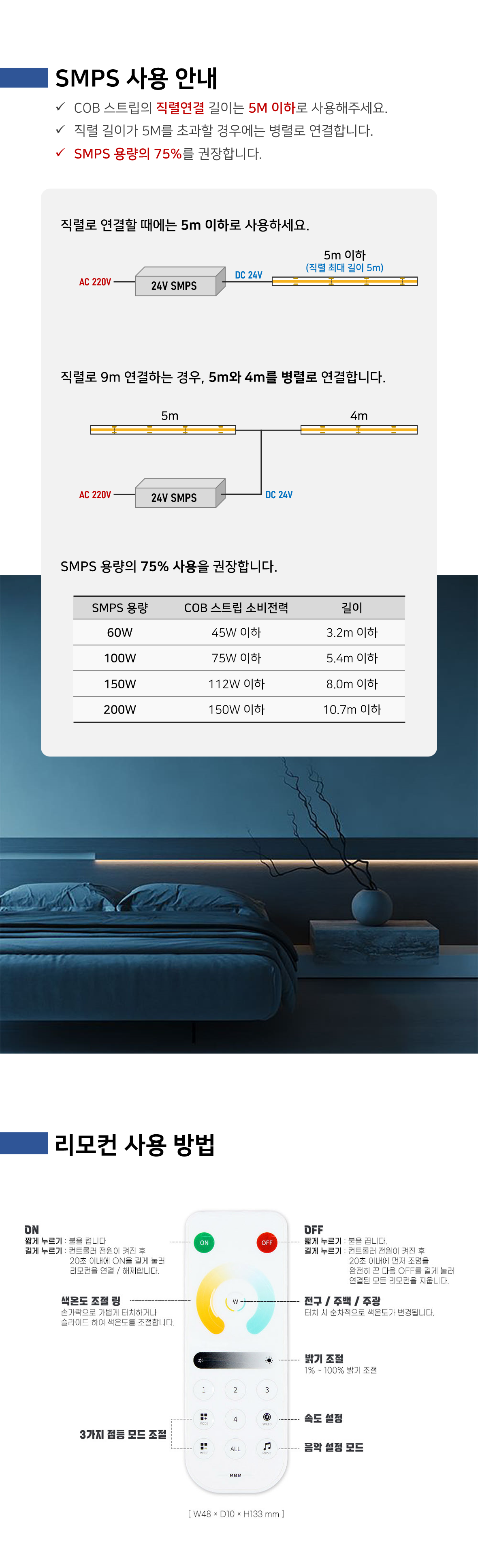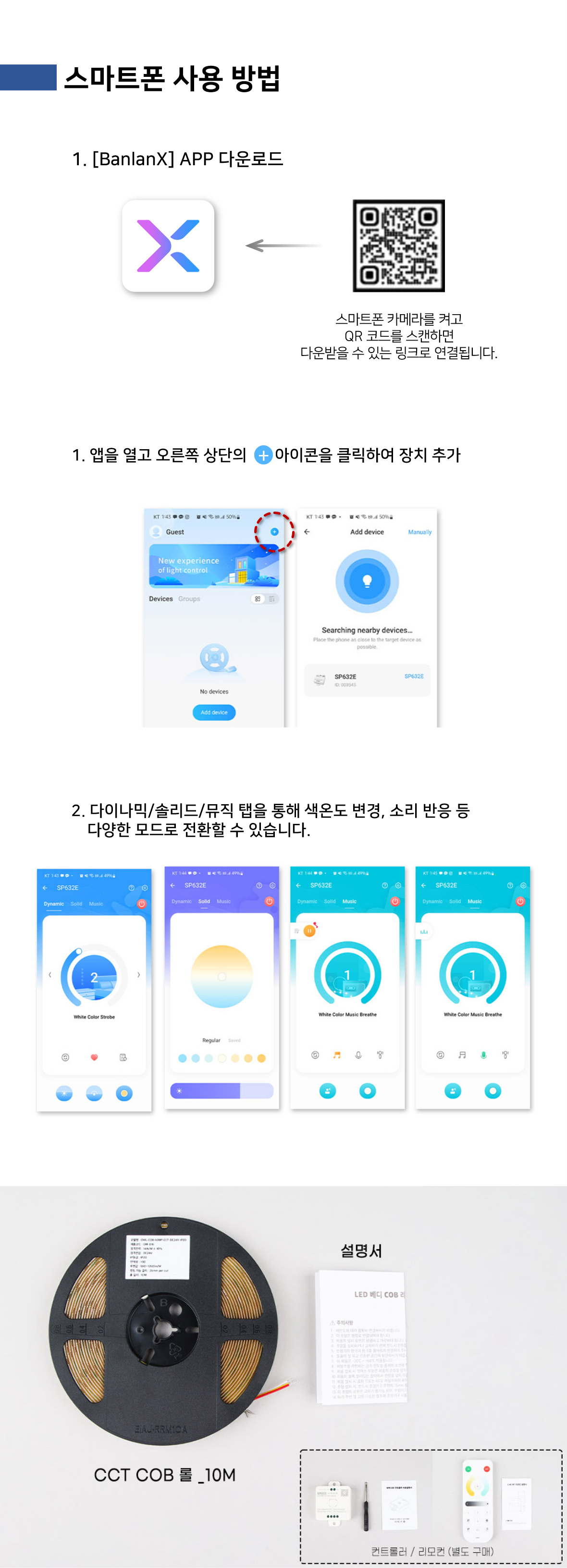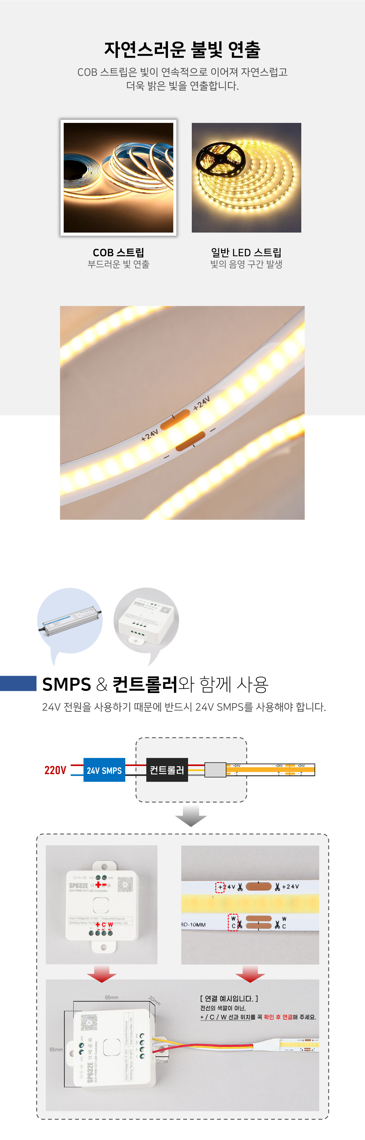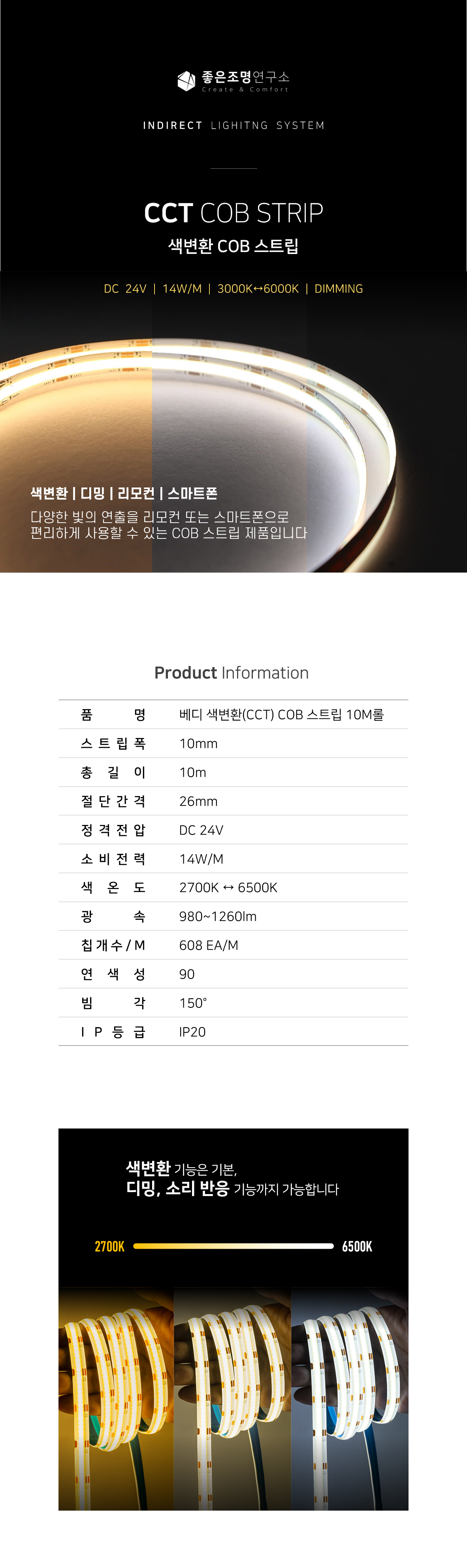 빛 끊김 없는 COB 타입의 색변환 LED 플렉시블