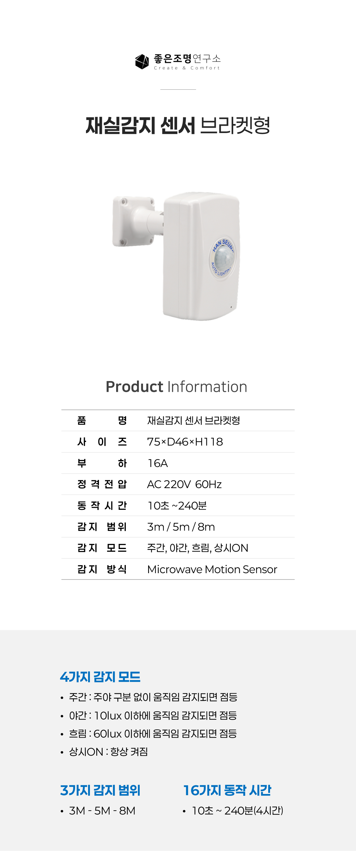 [브라켓형] 다기능 재실감지 센서