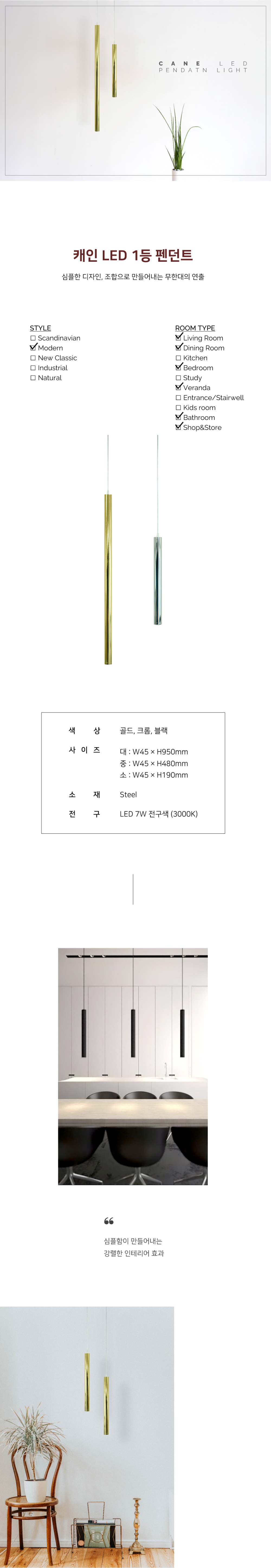 심플한 디자인의 조합으로 다양한 연출을 할 수 있는 조명입니다.