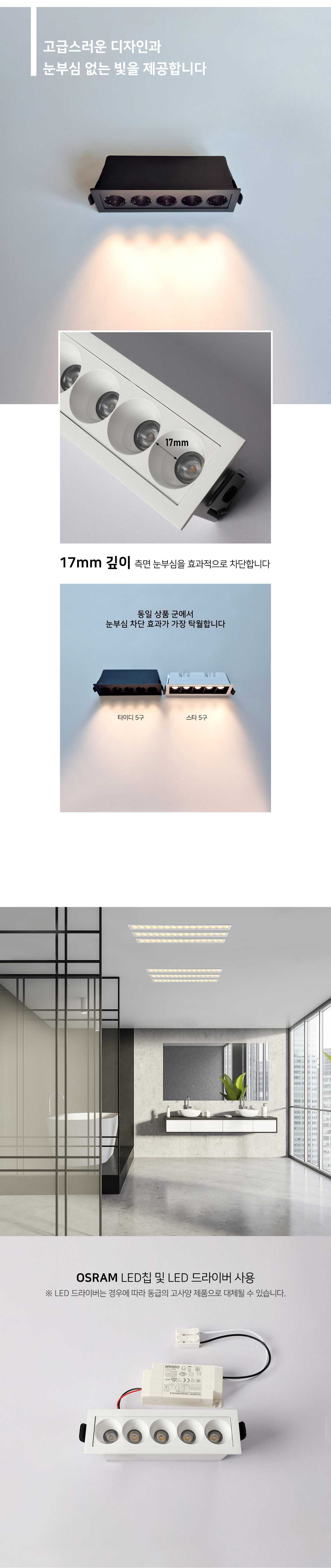 고급스러운 디자인과 눈부심없는 멀티 매입등