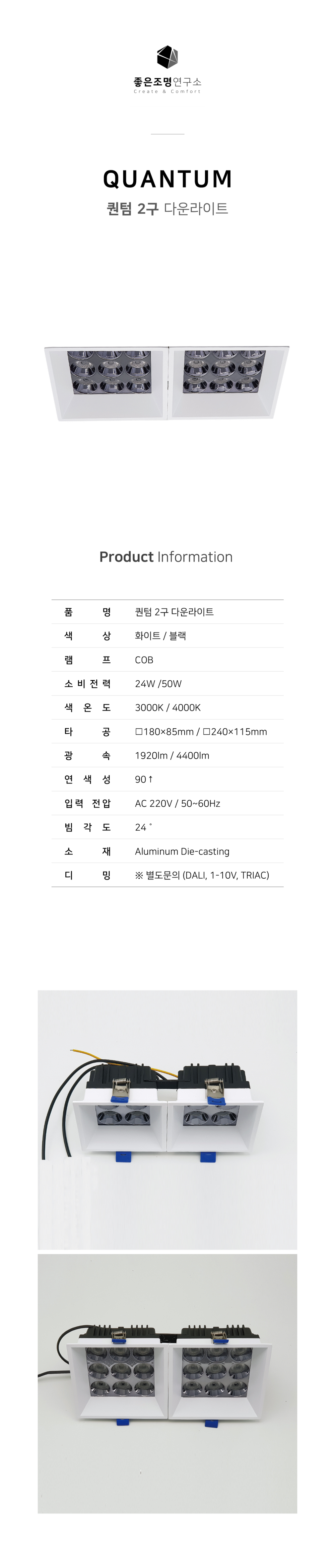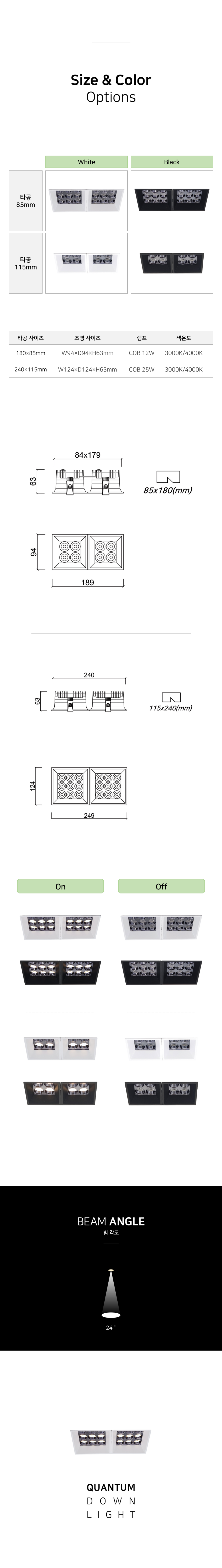 독특하고 세련된 사각 매입 다운라이트
