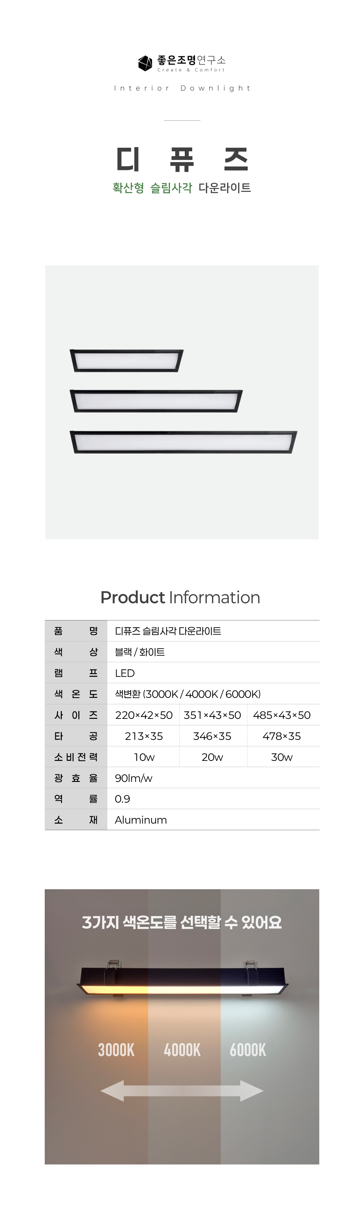 [색변환] 디퓨즈 사각 라인 확산 10W 20W 30W